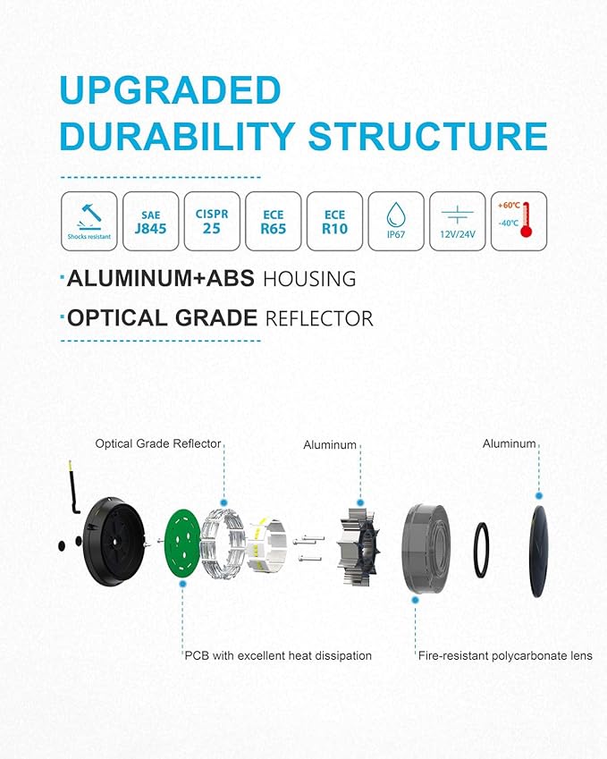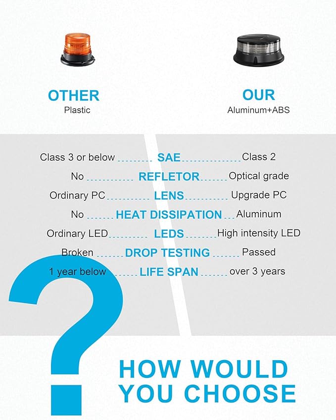 - 【HIGH QUALITY】The flashing hazard lights are made of durable ABS material and crystal-clear PC mask; outputs maximum brightness; waterproof IP67 rating; usable in rain and snow with a durable life of 50,000 hours