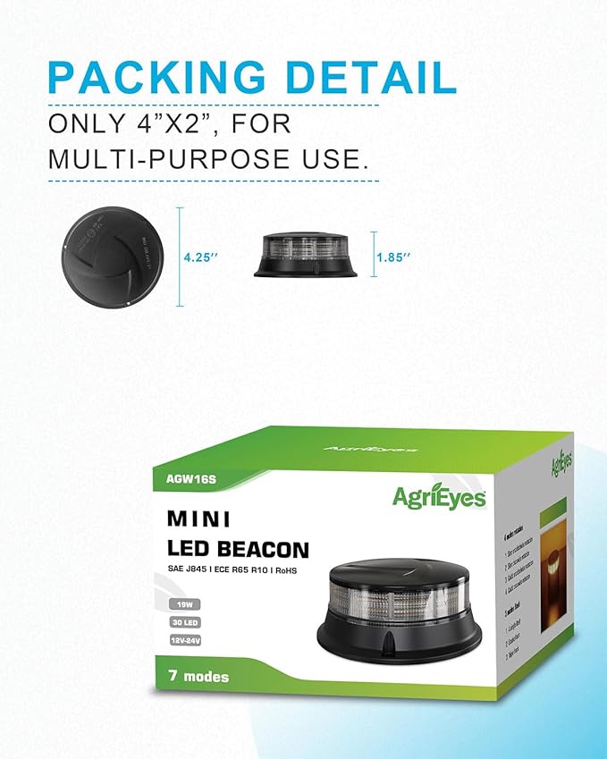 - 【SUPER VISIBILITY】Rooftop strobe light uses 30 high-intensity LED chips; 360-degree coverage fully illuminates from all angles to maximize light output and ensure effective warning; bright amber beacon lights are visible in rain, fog, and snow, day and night