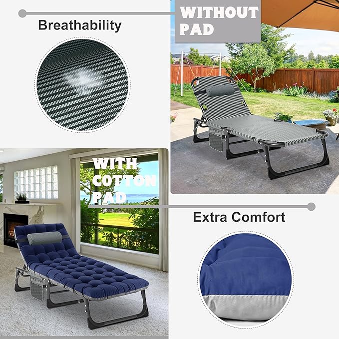 ABORON Folding Camping Cot W/Mat for Adults, Adjustable Heavy Duty Outdoor Bed,1200 D Layer Oxford Travel Camp Cots