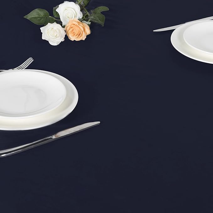 LUSHVIDA Round Waterproof Table Cover Elastic Vinyl Fitted Tablecloth Elastic Edged Plastic Table Cloth (Navy, Best for Up to 45"-56" Round)
