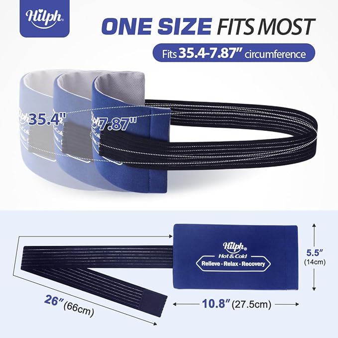 Hilph Reusable Ice Packs for Injuries, Soft Hot and Cold Gel Ice Packs with Adjustable Strap, Flexible Ice Wrap for Joints & Muscle Pain for Back, Shoulders, Head, Legs & More (10.8" x 5.5")