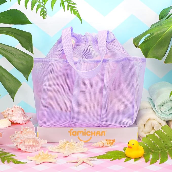 Mesh Shower Caddy Portable with Drawstring, Dorm Room Essentials for College Students Girl & Boy, Larger Shower Bag for Camping,Swimming,Gym,Travel,Bathroom - Purple