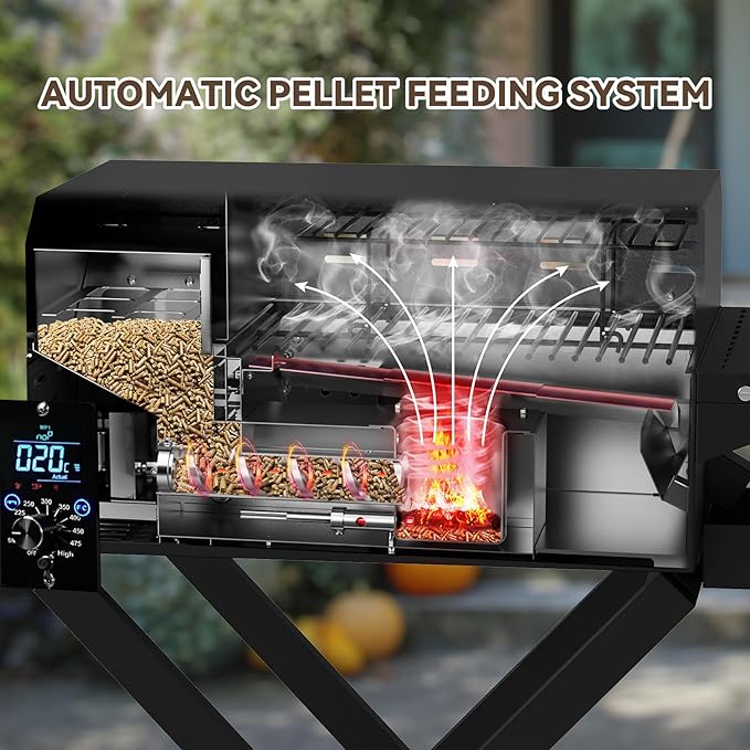 - 【EASY TO USE AND CLEAN 】- Just use wood pellets and start enjoy your outdoor BBQ cooking with your family and friends. You can clean the grease easily with the grease catcher. It's an amazing gifts for Christmas, Birthday, housewarming for family and friends. A grill cover CV701(sold seperated) is available for this grill.