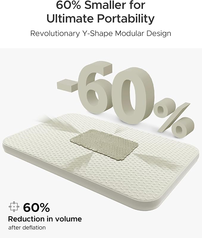 - ๐๐ป๐ป๐ผ๐๐ฎ๐๐ถ๐๐ฒ ๐จ๐น๐๐ฟ๐ฎ-๐ฝ๐ผ๐ฟ๐๐ฎ๐ฏ๐น๐ฒ ๐๐ฒ๐๐ถ๐ด๐ป: Our camping mattress features a Y-shaped foam telescopic structure that reduces its volume by 60% after deflation. As it deflates, it naturally forms a crease in the middle, facilitating easier rolling up. These designs ensure it's lighter and more compact than traditional foam air mattresses