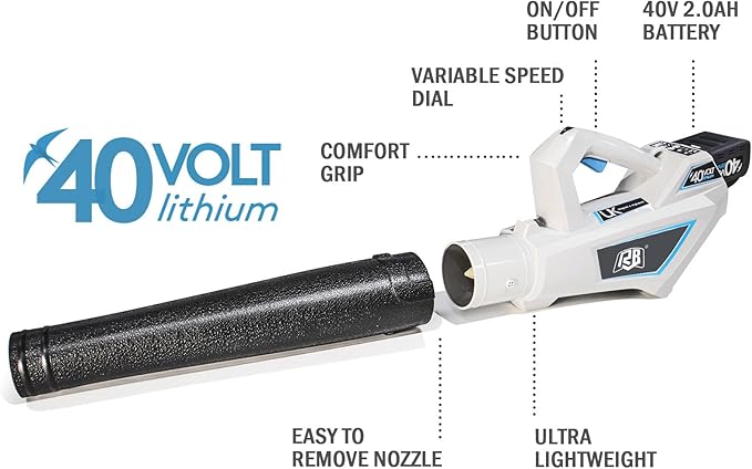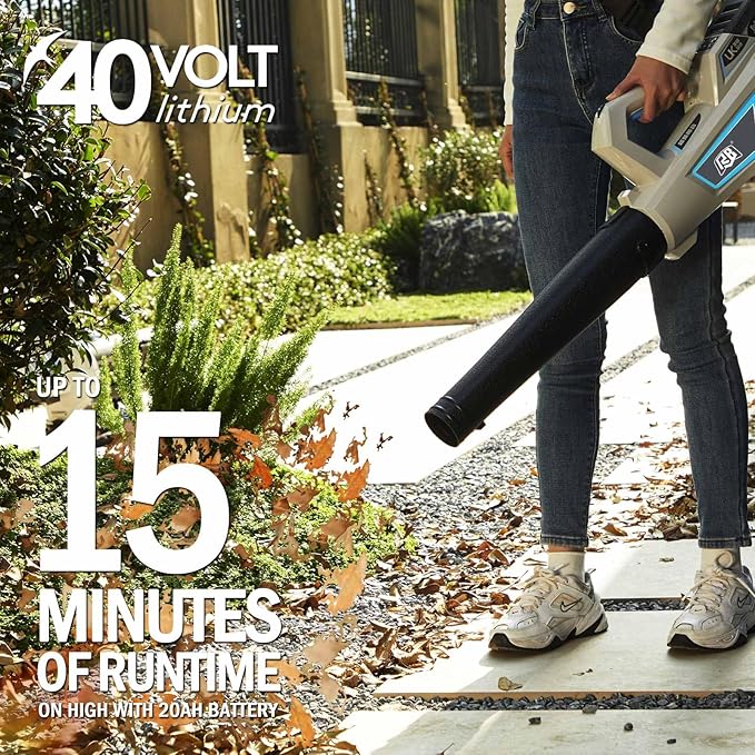 - 【Includes 2.0Ah Battery & Fast Charger】Comes with a 40V 2.0Ah lithium-ion battery and fast charger for 30+ minutes of runtime (low speed). No cords, no gas, just instant power—perfect for quick cleanups.