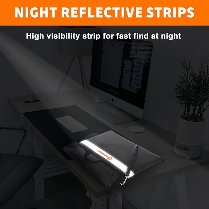 - 6200°F TOP FIRE PROTECTION: Upgraded fireproof bag with lock has passed Global Flammability Standards (US labs) and Vertical Combustion Testing (SGS UL94 V-1); Recommended by professional firefighters and tested in the most demanding environments; The Upgraded fire proof money bag for cash can withstand ultra high temperatures up to 6200°F; It is worth mentioning that the reflective strip of Hand-carry fireproof bag has high visibility at night, which is easy to quickly find in a fire