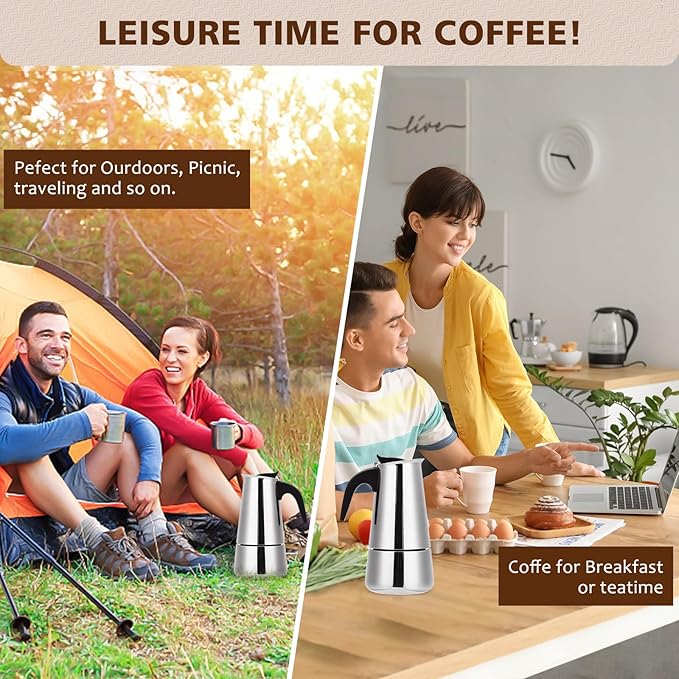 - ☕ ★High Quality★ The espresso maker is made of food safety 430 stainless steel, which is safe and healthy, has long service life and fast heating. It can also be cleaned in a dishwasher due to its excellent anti-corrosion and antioxidant properties.