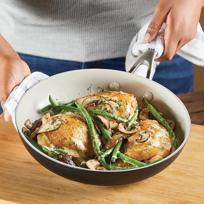 - EASY-CLEAN CERAMIC: High performance ceramic nonstick is made without PFAS, BPA, Lead, or Cadmium* for safe, consistent food release and fast, easy cleanup (*Manufacturing process does not involve adding to the product any of these substances which may otherwise be present in the environment)