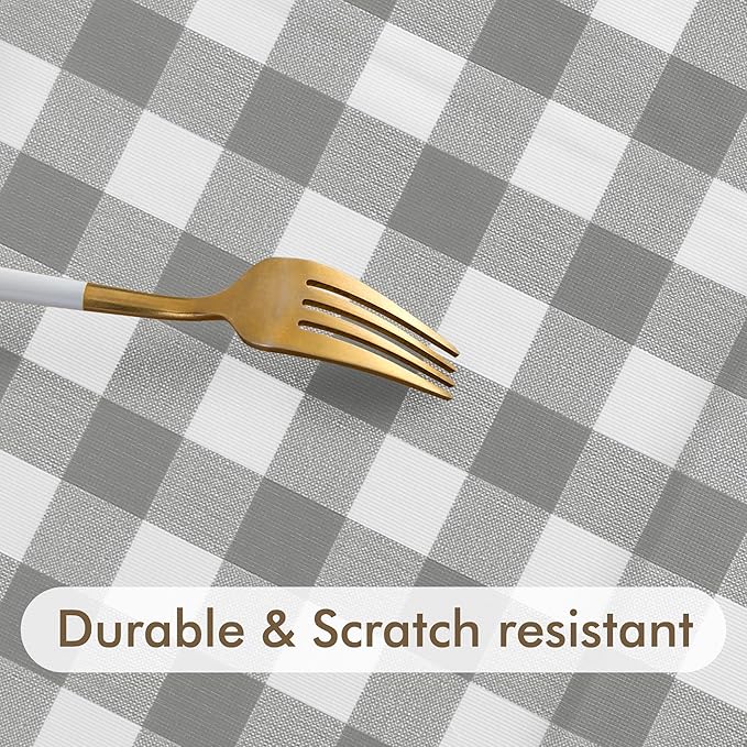 Fitable Round Vinyl Fitted Table Cover - 4 Pack Waterproof Checkered Elastic Edged Tablecloth Flannel Backed Table Cloth for Picnic Party, Silver/White (Fit for 45"-56" Round Tables)