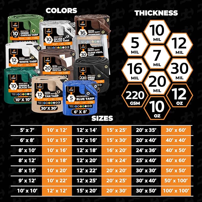 - AMAZING VERSATILITY: 37 sizes lets you cover up almost anything - perfect for camping, industrial and construction sites! FINISHED SIZE: Xpose Safety Premium Tarps Run True to Size.