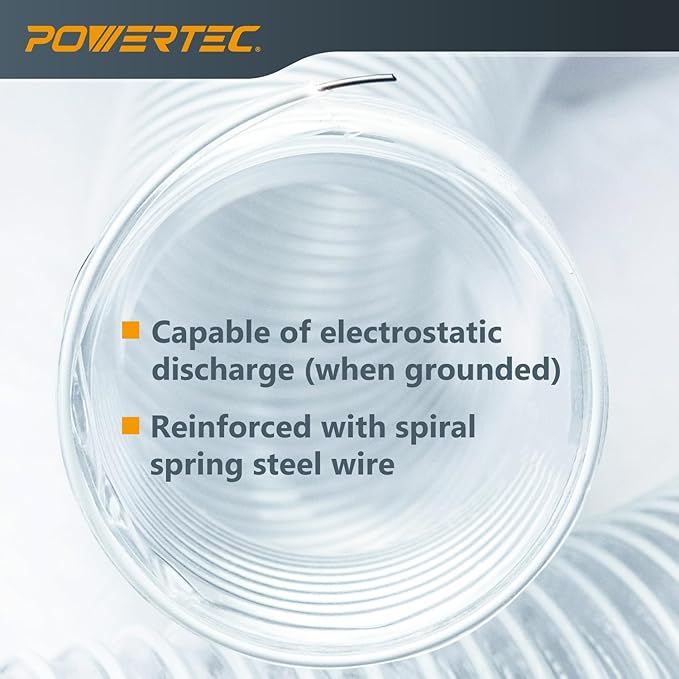 POWERTEC 4" x 5' Dust Collection Hose with 2pcs Key Hose Clamps for Table Saw, Band Saw, Planer, Jointer, Woodworking and Wood Shop Dust Collection System (70393)