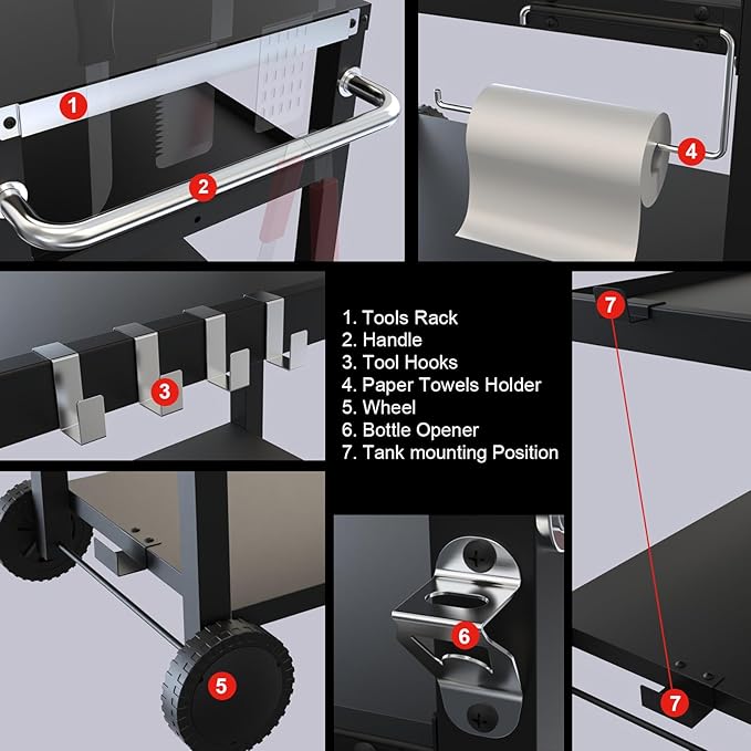 - Easy to Install&Clean: Assembling your BBQ Grill Cart is a breeze. With user-friendly instructions, you can quickly set up your cart and get ready for outdoor culinary delights. Spend more time enjoying your meals and less time assembling equipment.Additionally, the materials and construction are chosen for easy cleaning, ensuring that your outdoor cooking space stays tidy and ready for the next culinary adventure.