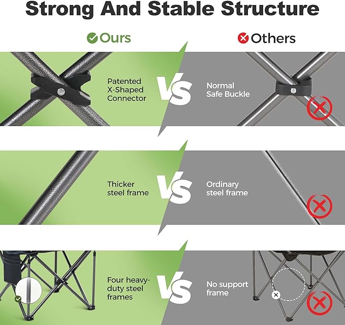 - 【Foldable & Portable】 Our camping chair is easy to set up and fold. 9.05" x 38.58" after folded, weighs only 13.2 lbs, convenient to store and transport. This portable folding chair is a perfect outdoor seat