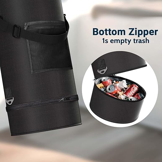 - Can be used with Trash Bag: When you embark on a long trip with your friends and family,the 8 rustproof zinc alloy snaps inside securely hold an 9-12 gallon trash bag for hassle-free waste disposal