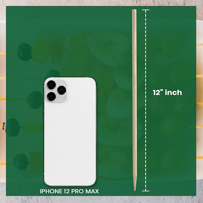 - STRONG & DURABLE BAMBOO SKEWERS 12 INCH: These 12-inch bamboo sticks are designed with a generous 4MM thickness for added strength, making them ideal for heavy foods, kabob skewers, and marshmallow toasting during summertime BBQ parties.