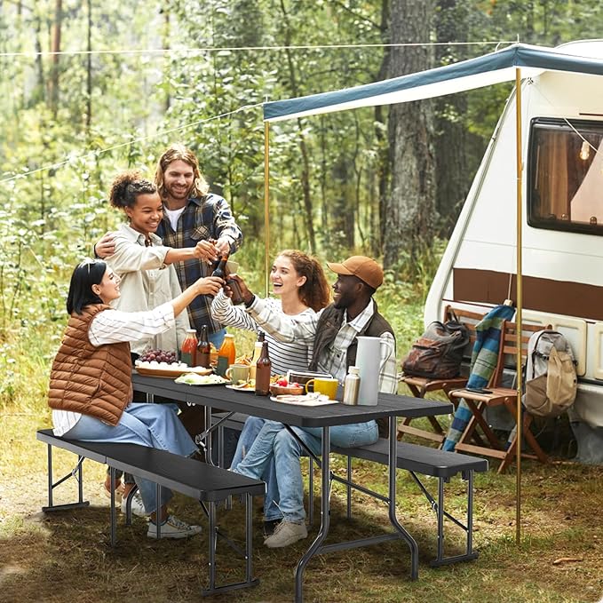 VINGLI 6 feet Plastic Folding Bench,Portable in/Outdoor Picnic Party Camping Dining Seat, Garden Soccer Multipurpose Entertaining Activities, Tree Patterned HDPE Tabletop, 1 Pack, Black