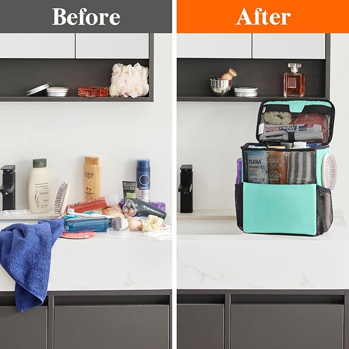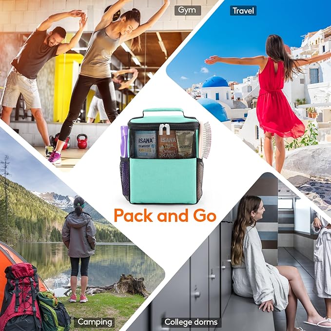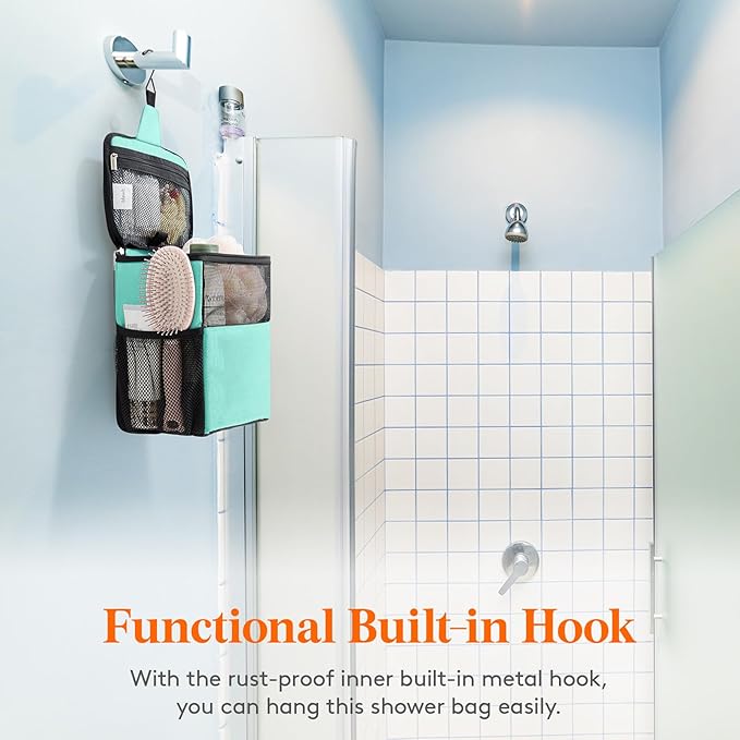 - Quick Dry: The resin mesh cloth is breathable and the bottom mesh design allows water to go through easily when showering without water hazards. It also provides ventilation for the shower caddy bag and keeps the contents dry inside.