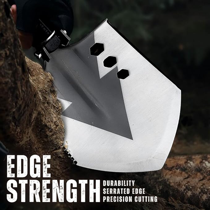 - 13 IN 1 SURVIVAL TOOL: Foldable, multi-functional camp shovel tool serves as a wood saw, knife blade, bottle opener, fire starter, wire cutter, window breaker, screwdriver, rope cutter, whistle, and hex wrench