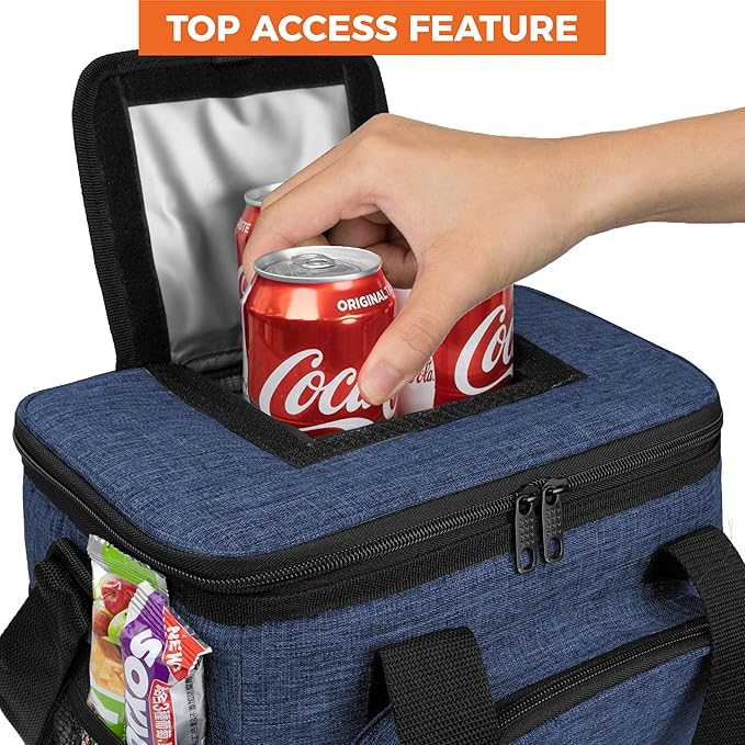 - SOFT COOLER INSULATED BAG: Soft sided pack cooler bag is the perfect insulated bag to keep your food, drinks, ice, and meals cool for camping, beach, picnics, road trips, work, office, and travel. Large capacity and fits up to 24 cans or multiple meals. Roomy enough for ice packs and ice blocks to keep your food extra fresh all day long. Portable soft cooler bag has adjustable reinforced soft carry shoulder straps, velcro handles, a large zipper front pocket, and mesh side pockets for bottles.