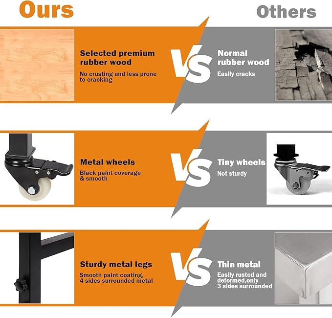 - UPGRADE METAL WHEELS: Unique black metal wheels with brake, Get your workstation anywhere. The smooth giant TPR wheels make it easy to move the table.Responsive brakes just only need to be pressed lightly