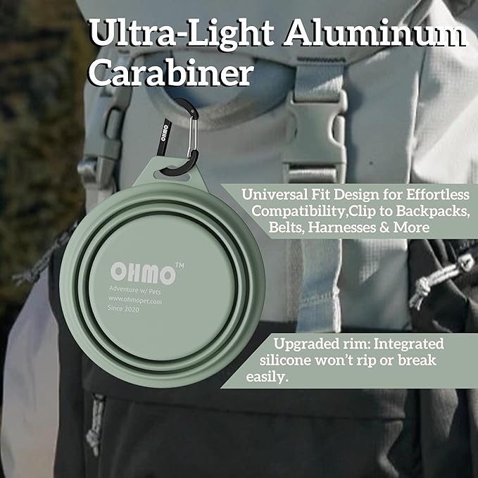 OHMO Collapsible Dog Bowl(2 Pack, Camo&Light Green 12oz/400ml) Premium Silicone Pet Water Bowls for Cats & Dogs, Portable Dog Travel Bowls Foldable for Outdoor Camping Hiking