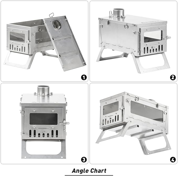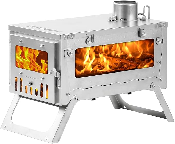 Camping Hot Tent Stove Wood Stove, POMOLY Ti Mini 0.6 Portable Lightweight Titanium Stove for Hiking, Cooking, Heating (Stove Pipe 6.56ft / 2m), Small, Slivery