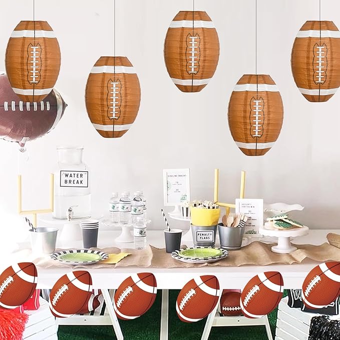 BEISHIDA 12-Inch Football Paper Lanterns Decorative Chinese/Japanese Hanging Round Paper Lanterns Lamp for sports party, Sport Themed Birthday Bar Football Game Party Decoration (6 Packs)