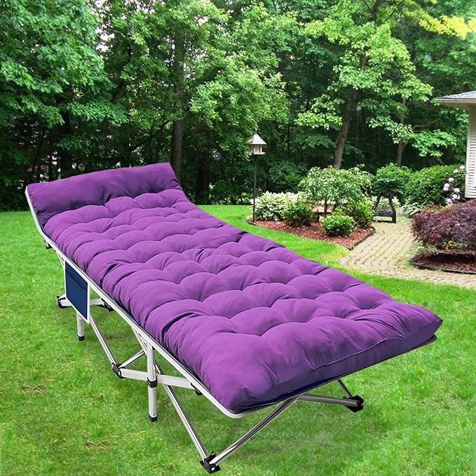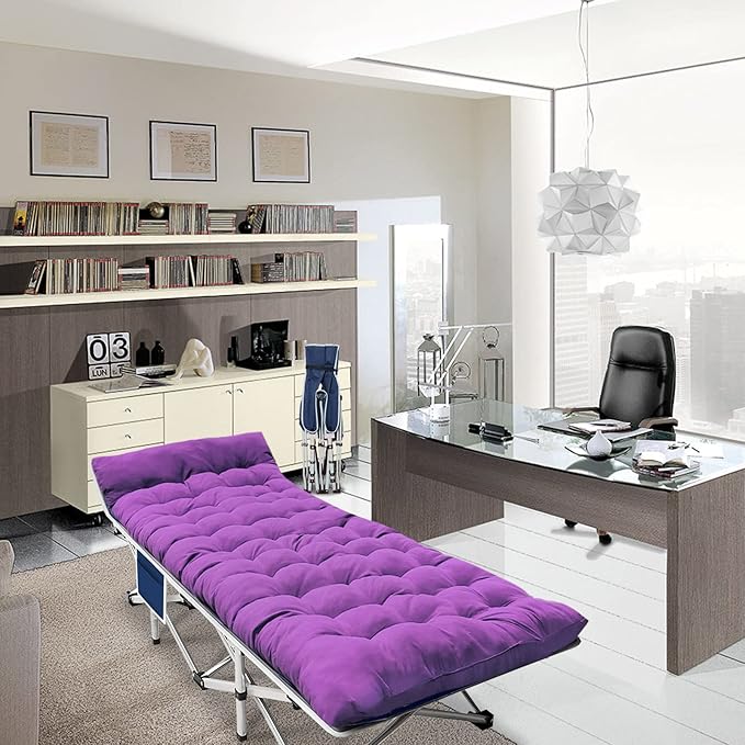 - Durable and comfortable: This folding cot is made of 26 steel pipes,that is sturdy enough and Max Load 500 lbs. The fabric of the cot is Oxford cloth. The Mattress filled with polyester fiber which is soft and comfortable.