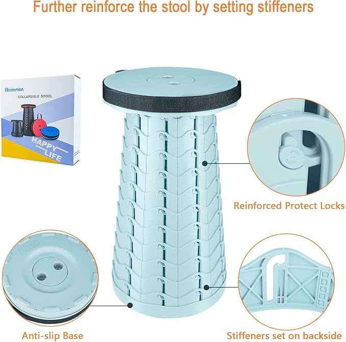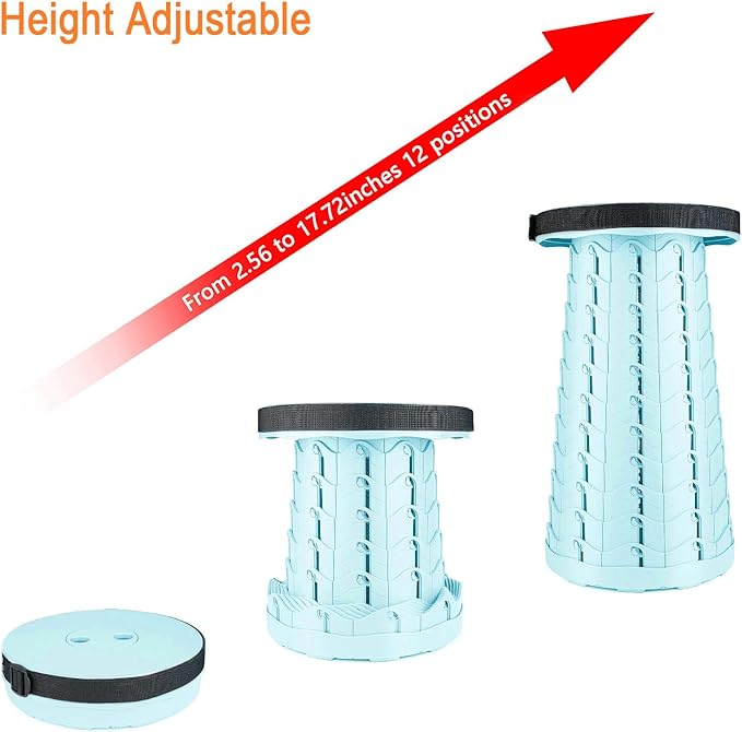 - PORTABLE & LIGHTWEIGHT: This telescopic stool is only 2.54 pounds with dimeter 9.84 inches/250mm. The adjustable strap makes the stool easy to carry in your hand or hanging on your shoulder. Perfect to use for camping, fishing, hiking, hunting, picnic, BBQ. Also can be used in living room, bedroom, bathroom etc