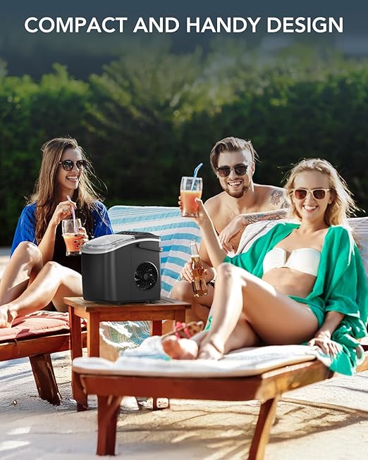 Ice Maker Countertop, Efficient Easy Carry Ice Machine, Self-Cleaning Ice Maker with Ice Scoop & Basket, 9pcs/ 8mins 26.6Lbs Per Day for Home/Office/Kitchen,Black