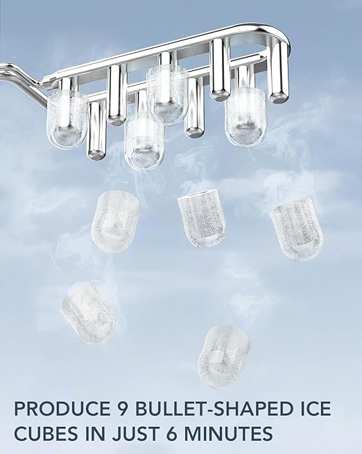 - High Efficient: Our product has higher ice efficiency than most ice maker on the market. This maker can produce 10 pieces of ice in at least 10 minutes in different environment; because sometimes the surrounding ambient temperature will affect the ice efficiency of the ice maker.