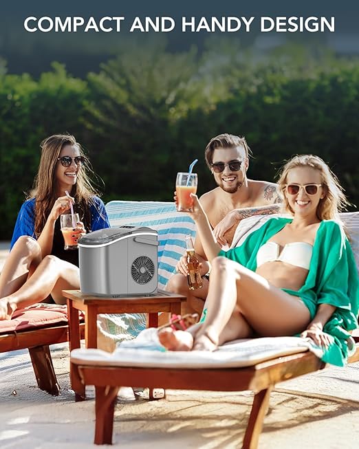 Ice Maker Countertop, Efficient Easy Carry Ice Machine, Self-Cleaning Ice Maker with Ice Scoop & Basket, 9pcs/ 8mins 26.6Lbs Per Day for Home/Office/Kitchen,Grey