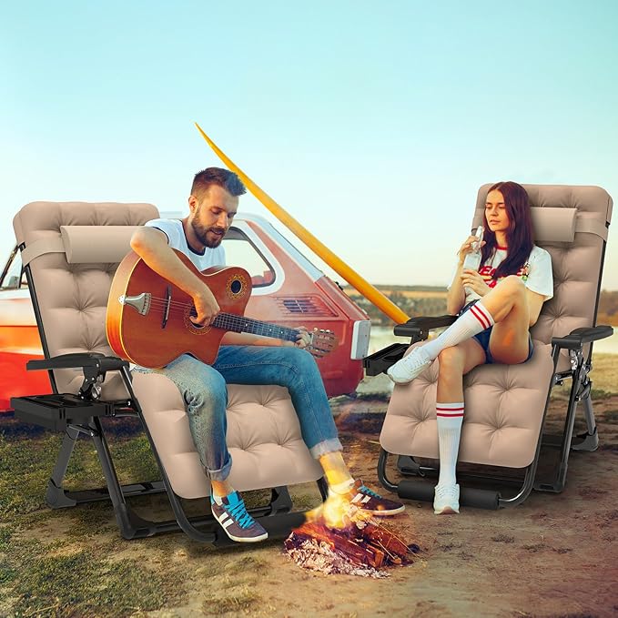 ZENPETIO 29In XL Zero Gravity Chair w/Cushion, Zero Gravity Recliner Lounge Chair for Indoor and Outdoor, Reclining Camping Chair for Lawn, Anti Gravity Chair with Cup Holder and Footrest, 440LBS