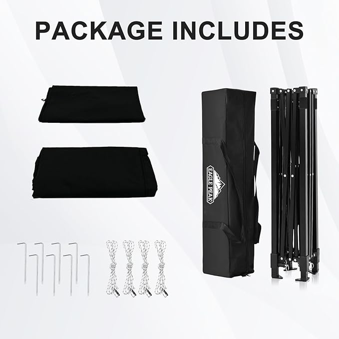 - EAGLE PEAK PROMISE: EAGLE PEAK offers a 1-year limited after sale protection from the original date of purchase. Unlike many other canopy manufacturers, EAGLE PEAK offers this for our frames, canopies and bags! If you have any other questions, please contact our professional service team .