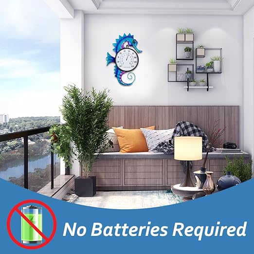 14" Seahorse Shape Outdoor Thermometer, Indoor Wall-Mounted Thermometer No Need Battery, Easy to Read for Patio Garden Living Room Decor