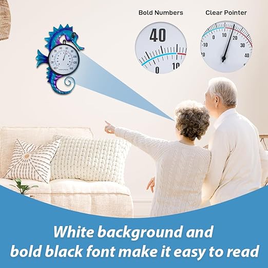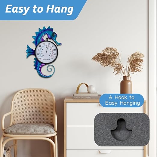 - Decorative Outdoor Thermometer: The great fusion of hippocampal elements and outdoor thermometer design brings a retro style from the ocean theme to a single-function thermometer, decorating the room and attracting attention