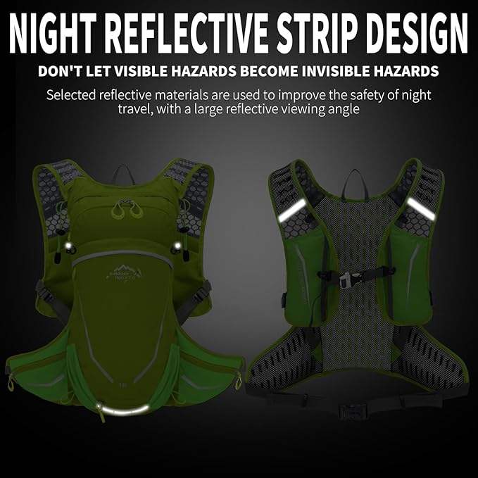 - [Secure and Multi-layer Storage] Hiking water backpack with reflective trim ensures safety at night. Multiple pockets can store various outdoor necessities. The three-layer pocket design allows you to quickly find the items you need for hiking. Quickly obtain small items such as keys, wallets, gadgets, sunscreen, mobile phones, towels, or any other items without removing the packaging. Lightweight and efficient travel channels enable you to run faster and farther.