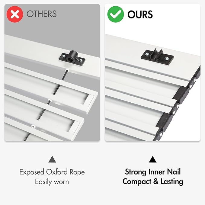 - Easy Carry Bag: This table comes with a carry bag which has two separate spaces for storing and transporting the folded frame and rolled up table top, this reduces potential scratches and damage during transportation