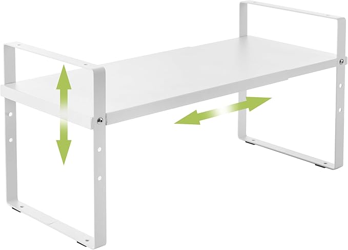 Expandable Cabinet Shelf Organizer Rack, Stackable Kitchen Counter Storage Shelves Stand, Adjustable Height Pantry Shelf Spice Rack (White, 1 Pack)