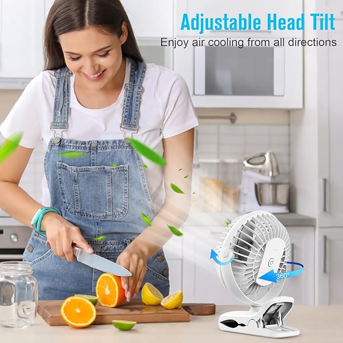 - Strong & Sturdy Grip Clamp: Easily clip on to any surface with a strong clamp for firm grip, even running upside down and still be adjusted to point in every direction. This rechargeable clip fan comes equipped easy-to-open clamp with rubber grips, placed virtually anywhere without scratching the surface