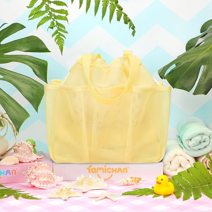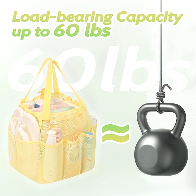Mesh Shower Caddy Portable with Drawstring, Dorm Room Essentials for College Students Girls & Boys, Large Shower Bag for Camping,Swimming,Gym,Travel,Bathroom - Yellow