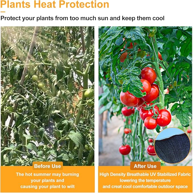 - ??0% Shade Cloth for UV Protection Heat Resistant??UCINNOVATE sun shade cloth lowers the heat by blocking out sunlight, 90% UV resistant is the perfect amount of shade to keep them protected from the intense direct heat. For example, orchids and ferns which are shade loving plants require high UV blocking shade cloth to receive the appropriate levels of sunlight. You will have a high return on your shade cloth investment by reduced energy costs and water costs.