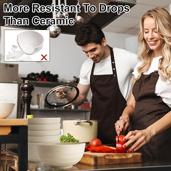 Homienly Wheat Straw Bowl Set, Large Cereal Bowls 6 PCS, Salad Bowls, Large Soup Bowl,Serving Bowl for Kitchen, Picnic, RV, Camping, 60 OZ Microwave and Dishwasher Safe Big Bowl Set- Beige