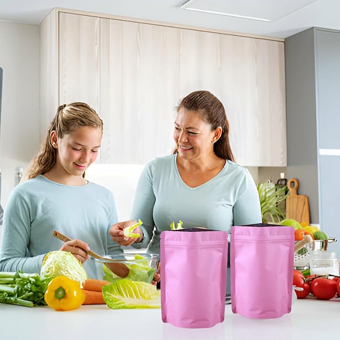 200 Pcs Mylar Bags for Food Storage 4x6 Smell Proof Bag Stand Up, Foil Resealable Bags for Food, Freeze Dried Candy Packaging Sealable Pouch Jewelry Bracelet Pouch for Small Business, Pink
