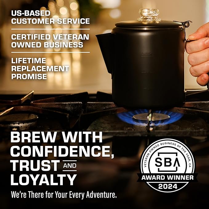 - PROTECTIVE BLACK COATING — We coated an already sturdy & durable percolator to make our sleekest looking coffee maker yet. Brew in style and make your bold camping coffee in something really cool lookin’.