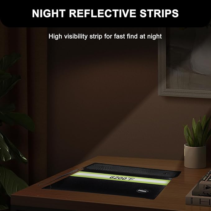 Fireproof Document Bag with Water Resistant Zipper,6200°F Heat Insulated Fire Proof Pouch with Soft Leather Hand Strap,Fire and Waterproof Envelope for Cash,Documents,Jewelry