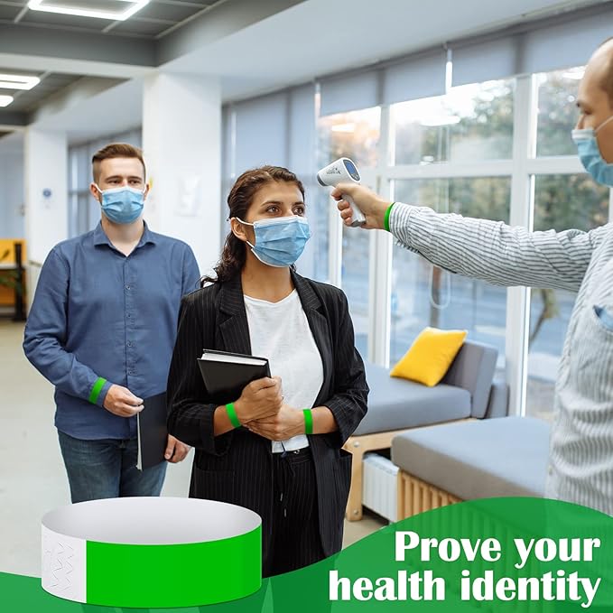 Tudomro 12000 Pcs Paper Wristbands for Events Arm Hand Lightweight Neon Colored Concert Party Wristbands Adhesive Paper Bracelets Waterproof(Green)