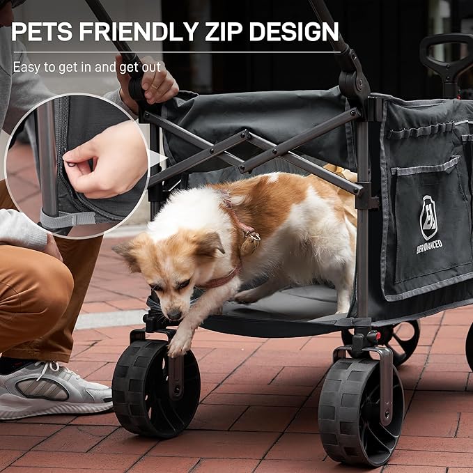 - CONVENIENCE AND SAFETY: The bottom of the push wagon has a zip design for storing long items, and the side of the utility wagon has reflective strips to protect your safety when you use it at night