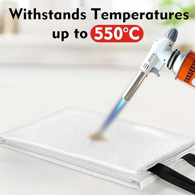 - 【Durable & Reliable】The fire blanket is made of fire-resistant material, such as fiberglass, and has a long service life. It can withstand high temperatures of up to 1000°F and is not easy to burn or melt.