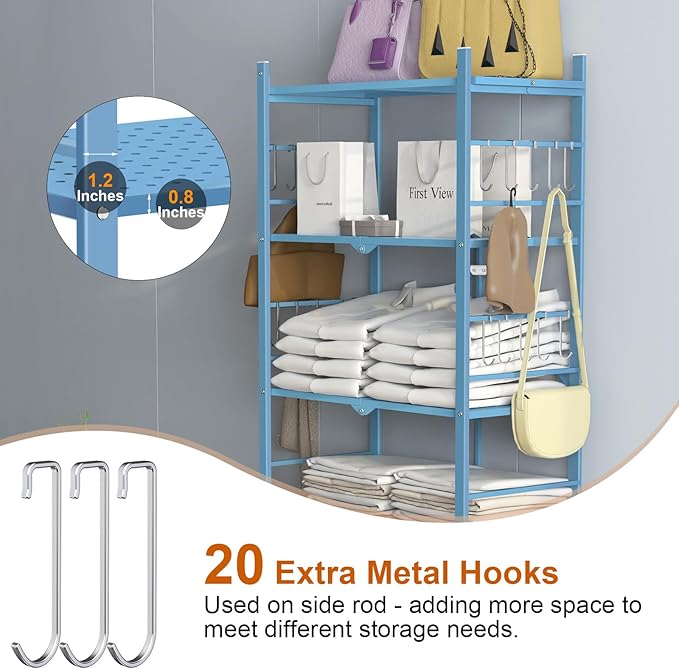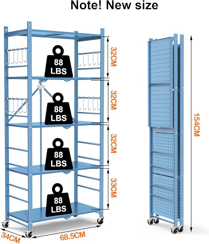 - What Will You Get: Order now, you will get 1* Himix 5-Tier Storage Folding Shelves; 20*hooks;4* Wheels; 4*adjust feet; 600 days no reason to return, 24* hours customer service.
